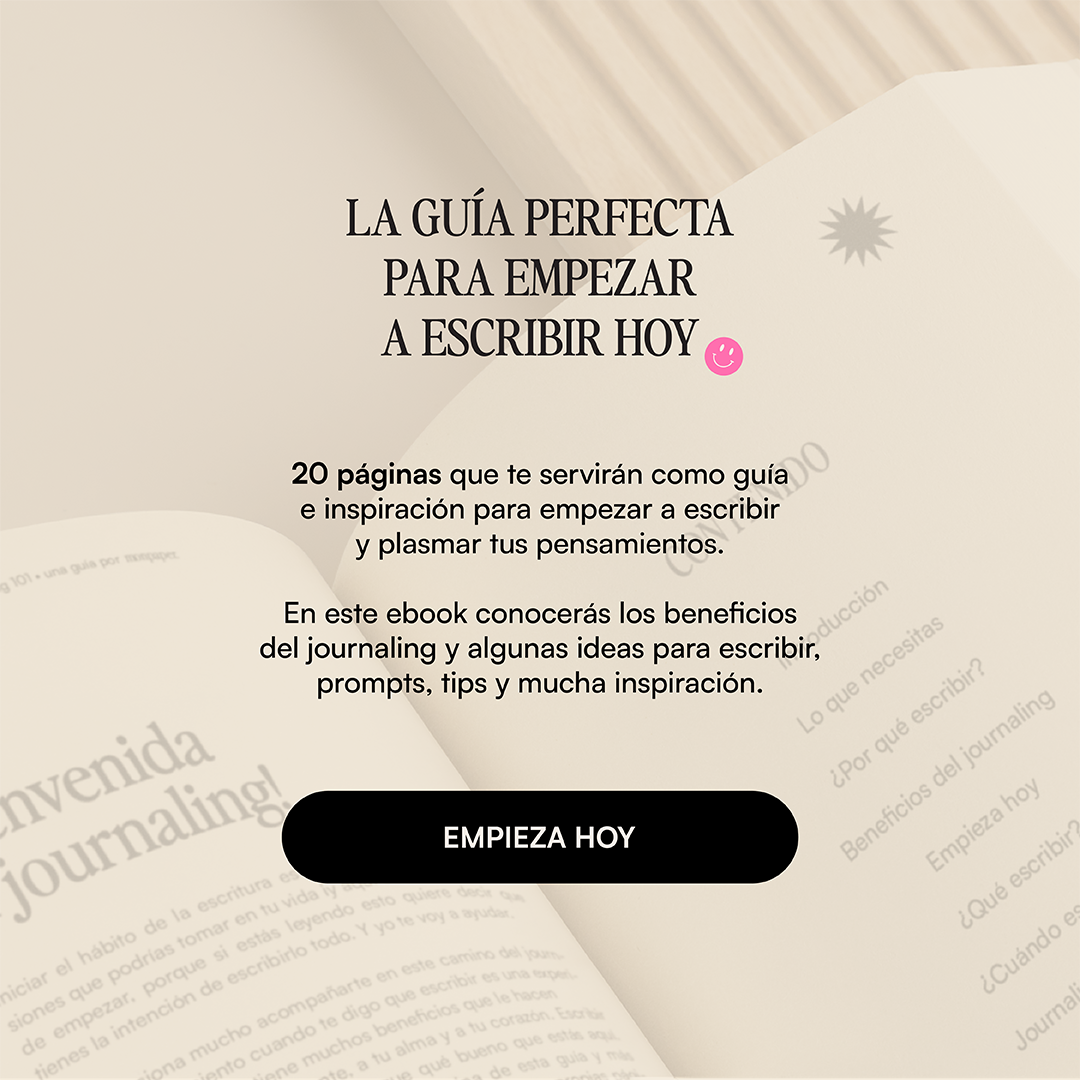 Una guía para que inicies tu camino en el mundo de la escritura. En ella encontrarás beneficios, ideas y prompts perfectos para que sea más fácil para ti empezar a escribir y documentar tu crecimiento.